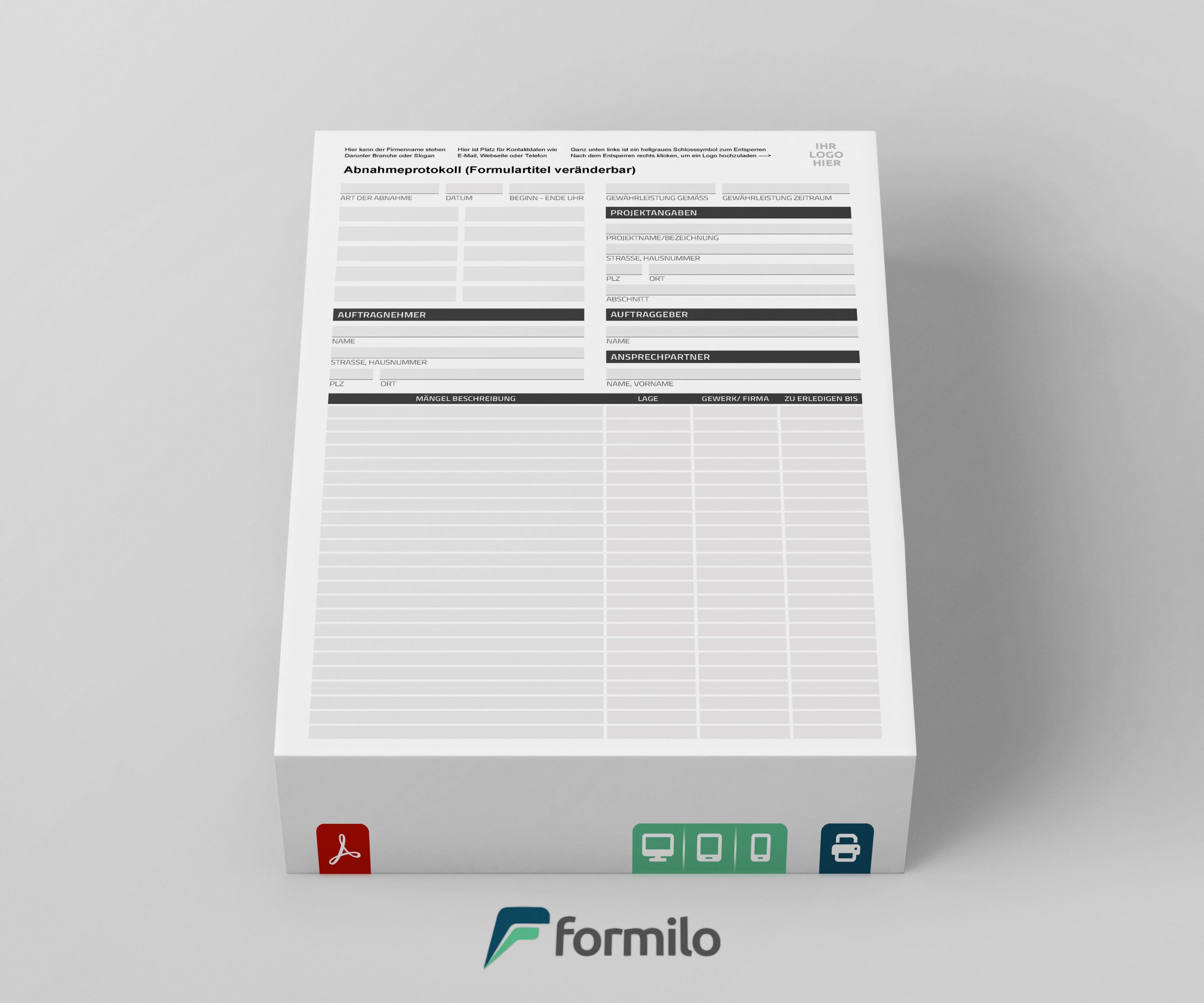 Diese Abnahmeprotokoll-Vorlage von Formilo verbindet Anpassungsfähigkeit mit Klarheit – und schafft damit ideale Bedingungen für transparente, revisionssichere Projektabschlüsse.
