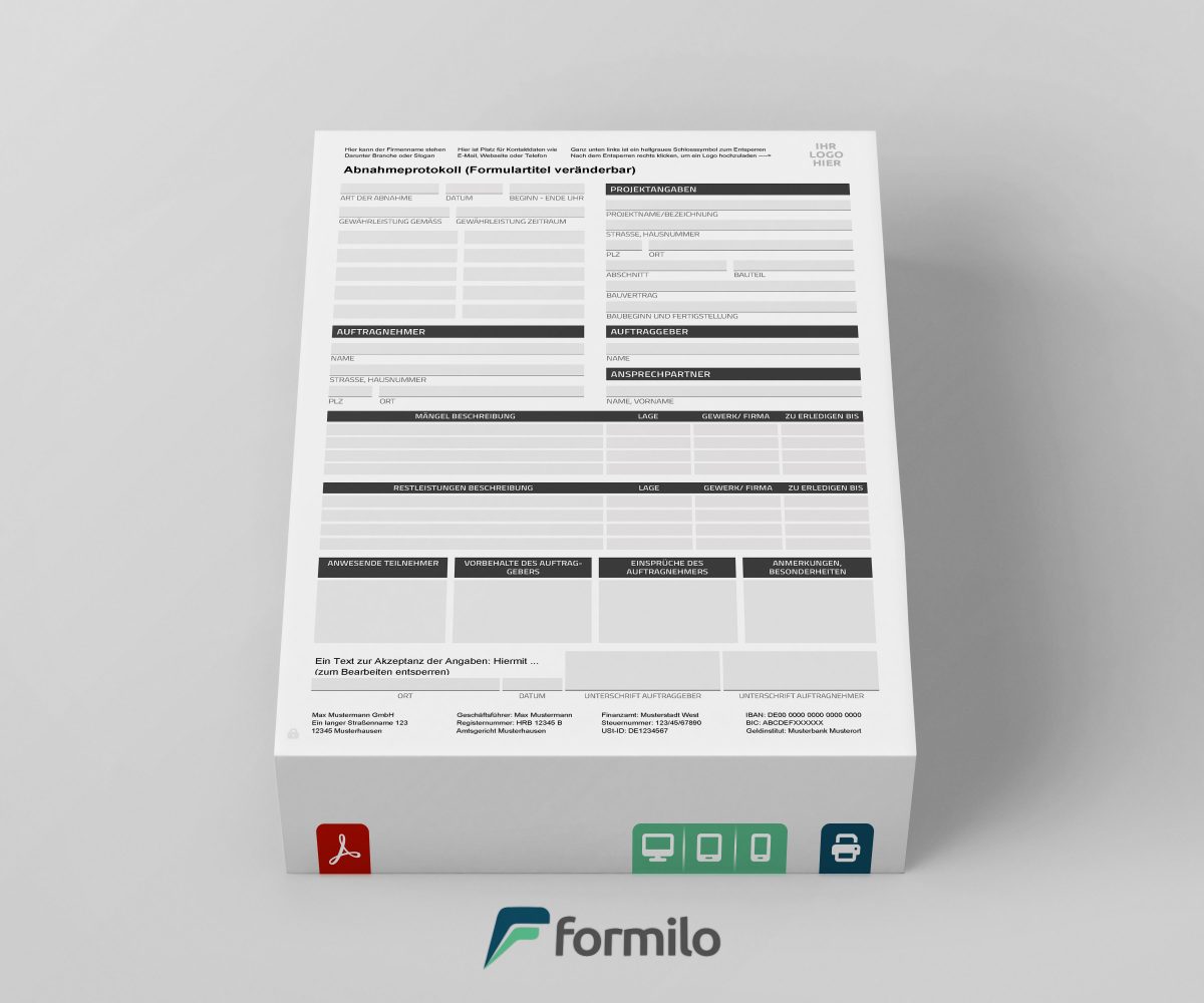 Abnahmeprotokoll Vorlage – Auftragnehmeranschrift – Projektdetails – Freifelder