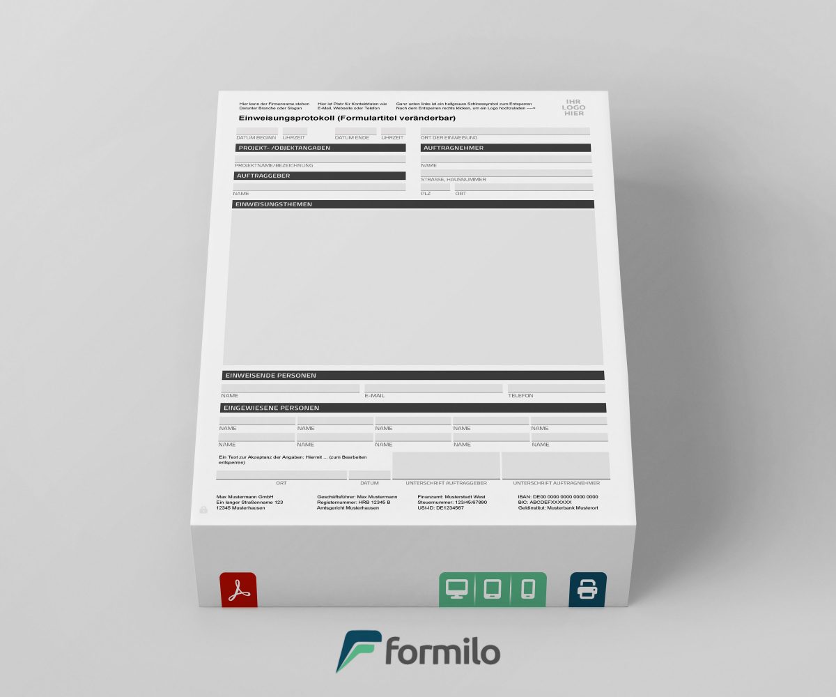 Diese Einweisungsprotokoll-Vorlage von Formilo eignet sich hervorragend für die strukturierte und dokumentierte Einweisung von externen Auftragnehmern. Besonders in sicherheitskritischen oder komplexen Projektumgebungen – etwa im Bauwesen, in der Industrie oder bei Facility Services – ist eine lückenlose Nachvollziehbarkeit der vermittelten Inhalte essenziell. Diese Vorlage unterstützt Sie dabei mit einer präzisen Kombination: Auftragnehmerdetails, eine ausführliche Themenbeschreibung und Platz für zehn Teilnehmer.