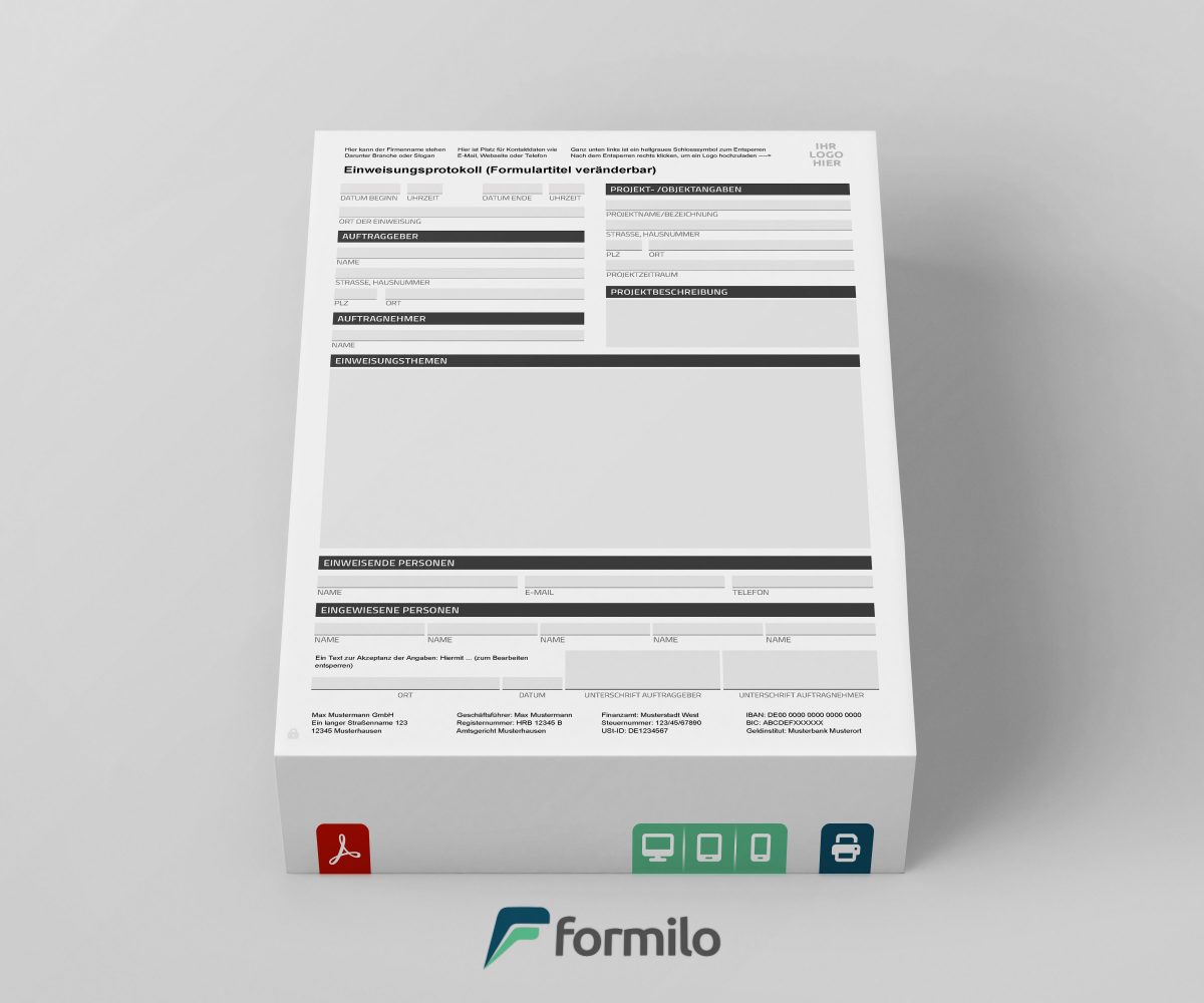 Diese Einweisungsprotokoll-Vorlage wurde speziell für Unternehmen entwickelt, die Wert auf strukturierte und nachvollziehbare Prozesse legen. Mit integrierten Feldern für umfassende Projektdetails und eine präzise Themenbeschreibung eignet sich die Vorlage ideal für Bauprojekte, technische Installationen, Instandhaltungsmaßnahmen oder andere einweisungsrelevante Tätigkeiten. Sie bietet dem Nutzer eine übersichtliche Darstellung der Projektdaten – inklusive Name, Beschreibung und Zeitraum – sowie Platz für vollständige Adressangaben des Auftraggebers.