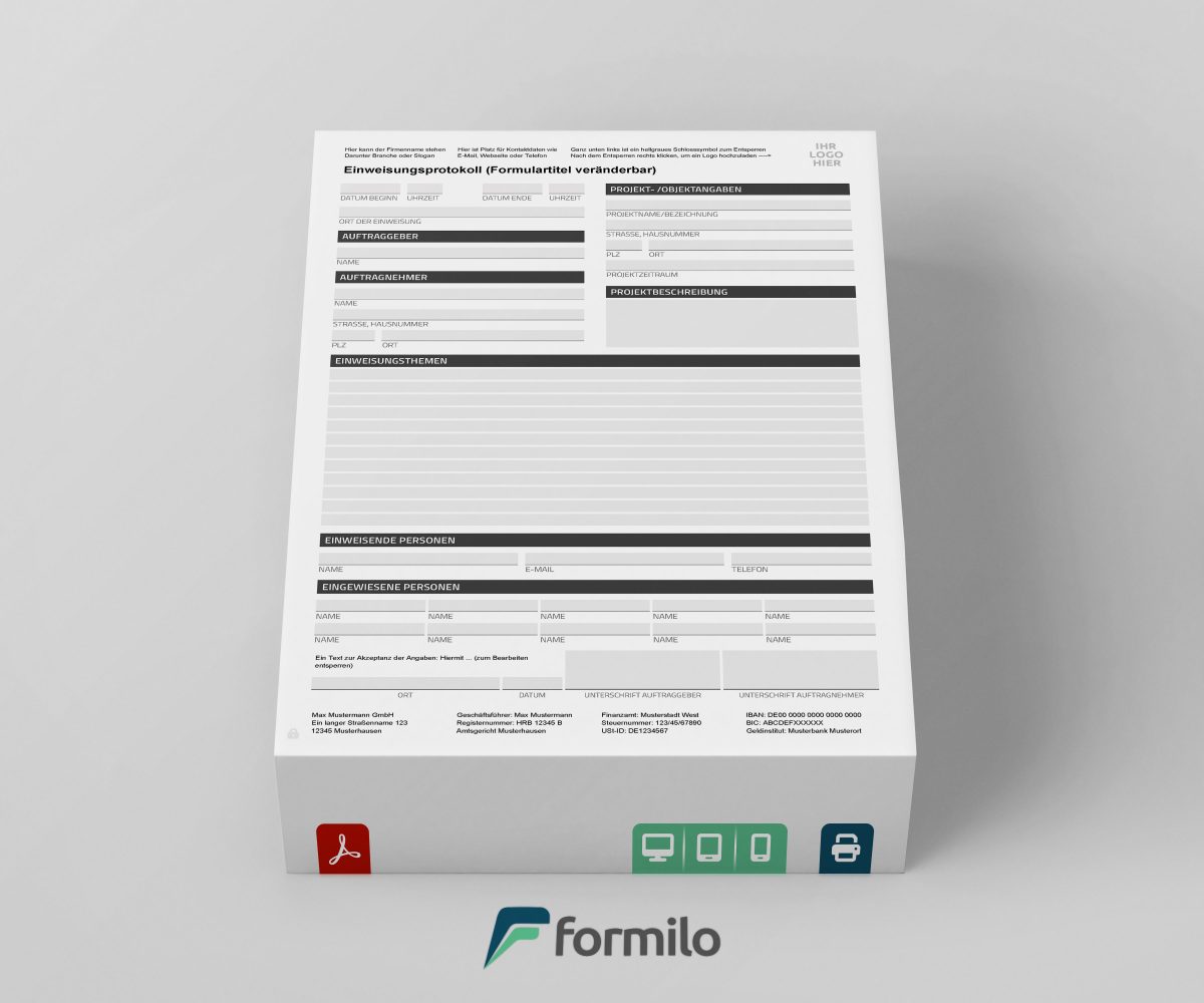 Die Vorlage ist durchdacht aufgebaut, leicht handhabbar und ideal für alle Einsatzszenarien, in denen Einweisungen formal und rechtssicher dokumentiert werden müssen.