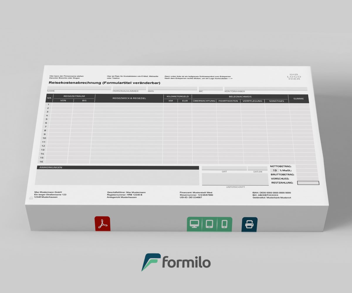 Diese Reisekostenabrechnung im PDF-Format wurde speziell für Unternehmen konzipiert, in denen Mitarbeitende regelmäßig mehrere Dienstreisen durchführen und eine strukturierte, vollständige und nachvollziehbare Abrechnung erforderlich ist. Die tabellarische Gestaltung erlaubt die übersichtliche Erfassung mehrerer Reisen in einem Dokument. Neben klassischen Angaben sind in dieser Vorlage auch komplexe Aspekte wie Kilometergeld, Mehrwertsteuer, Vorschusszahlungen und die Bankverbindung berücksichtigt – ein echter Vorteil für Firmen mit interner Buchhaltung oder steuerlicher Prüfung.