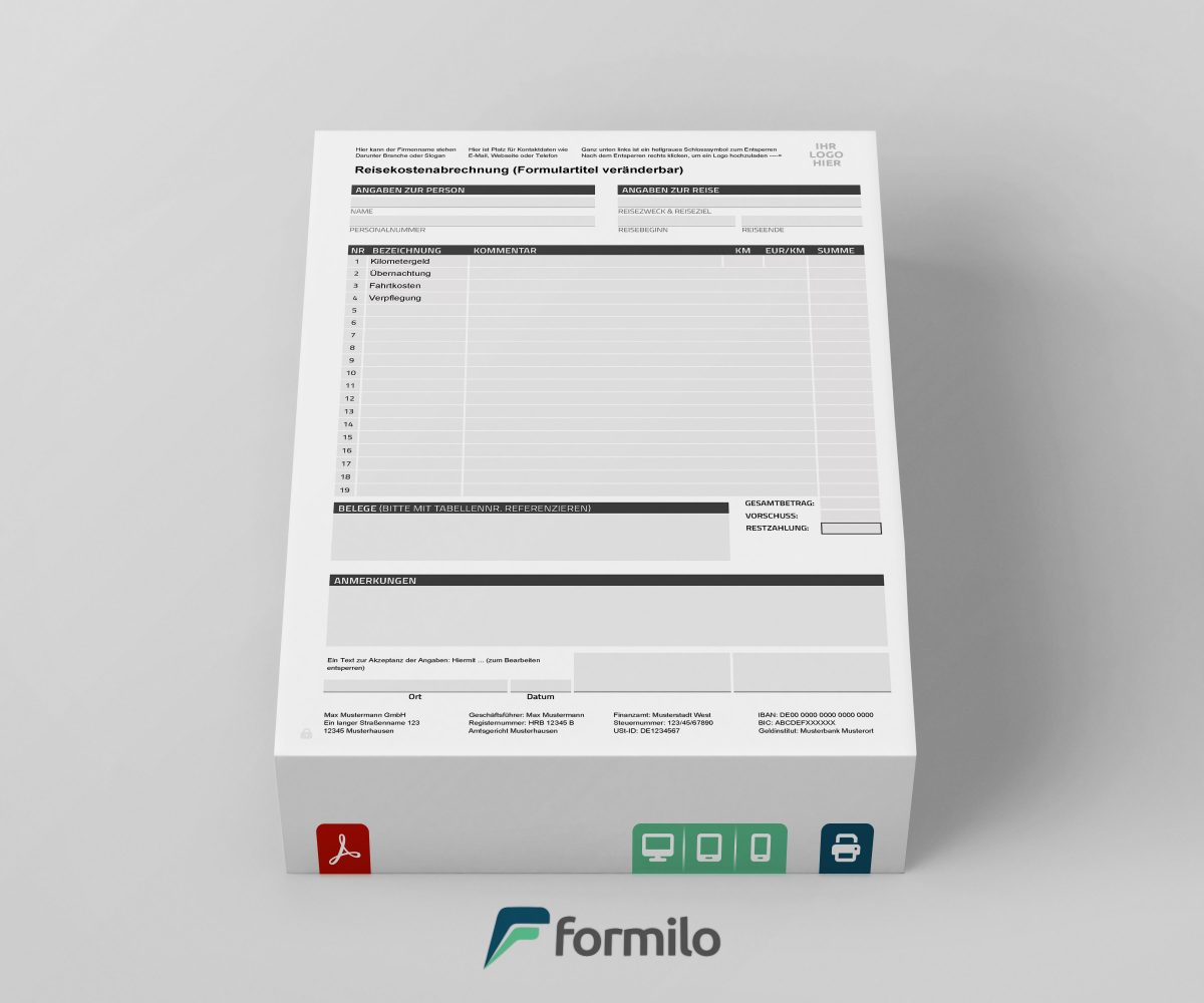Diese Reisekostenabrechnungsvorlage von Formilo ist die optimale Lösung für Unternehmen, die geschäftliche Reiseausgaben erfassen und gleichzeitig die Mehrwertsteuer korrekt ausweisen müssen. Mit separat angelegten Feldern für Netto- und Steuerbeträge bietet das Formular volle Transparenz für jede Ausgabeposition. Besonders für zum Vorsteuerabzug berechtigte Unternehmen ist diese Funktion unerlässlich, um finanzielle Vorteile konsequent zu nutzen und steuerlich korrekt abzurechnen.