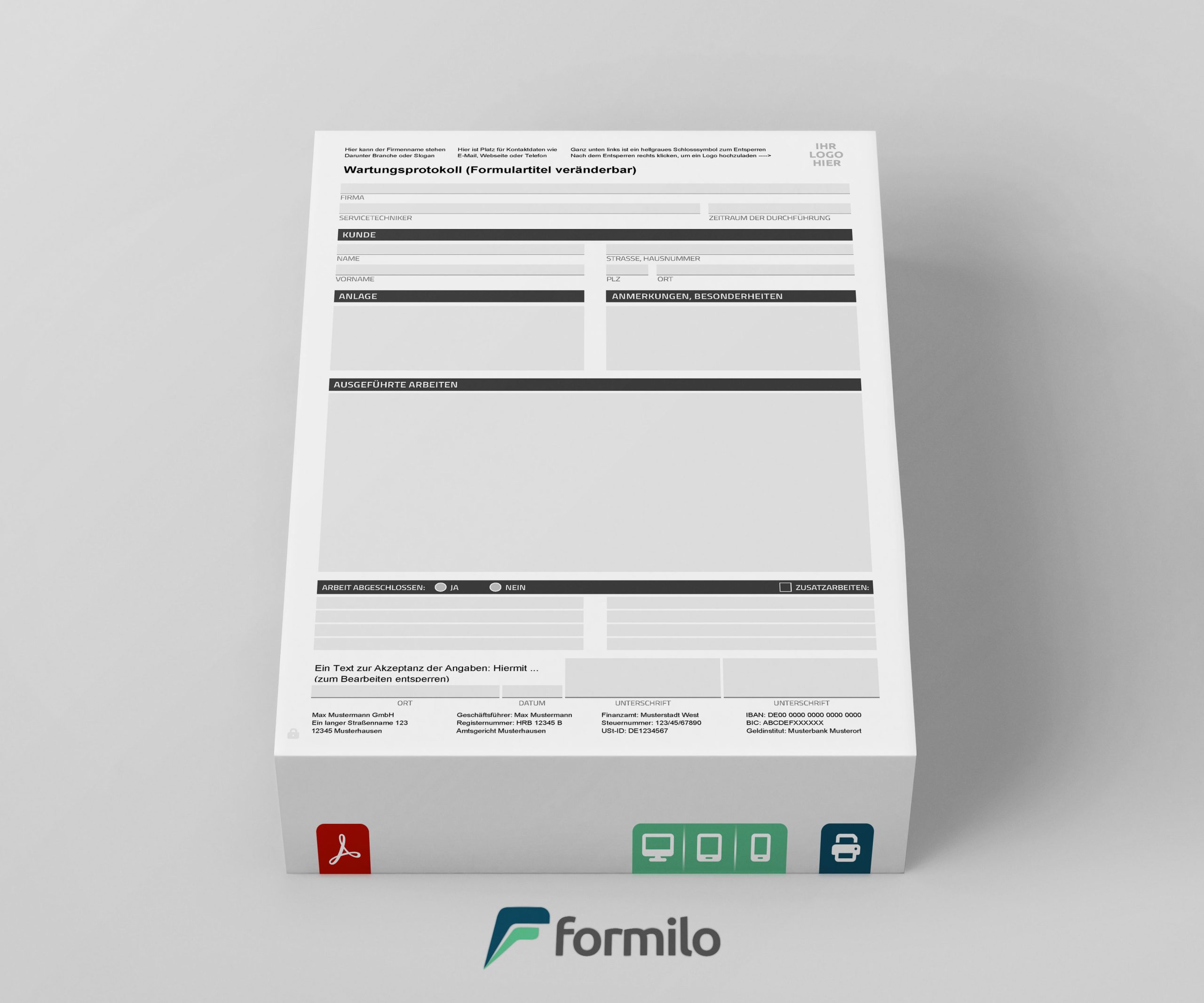 Wartungsprotokoll Vorlage mit Kundendetails und Zusatzarbeiten