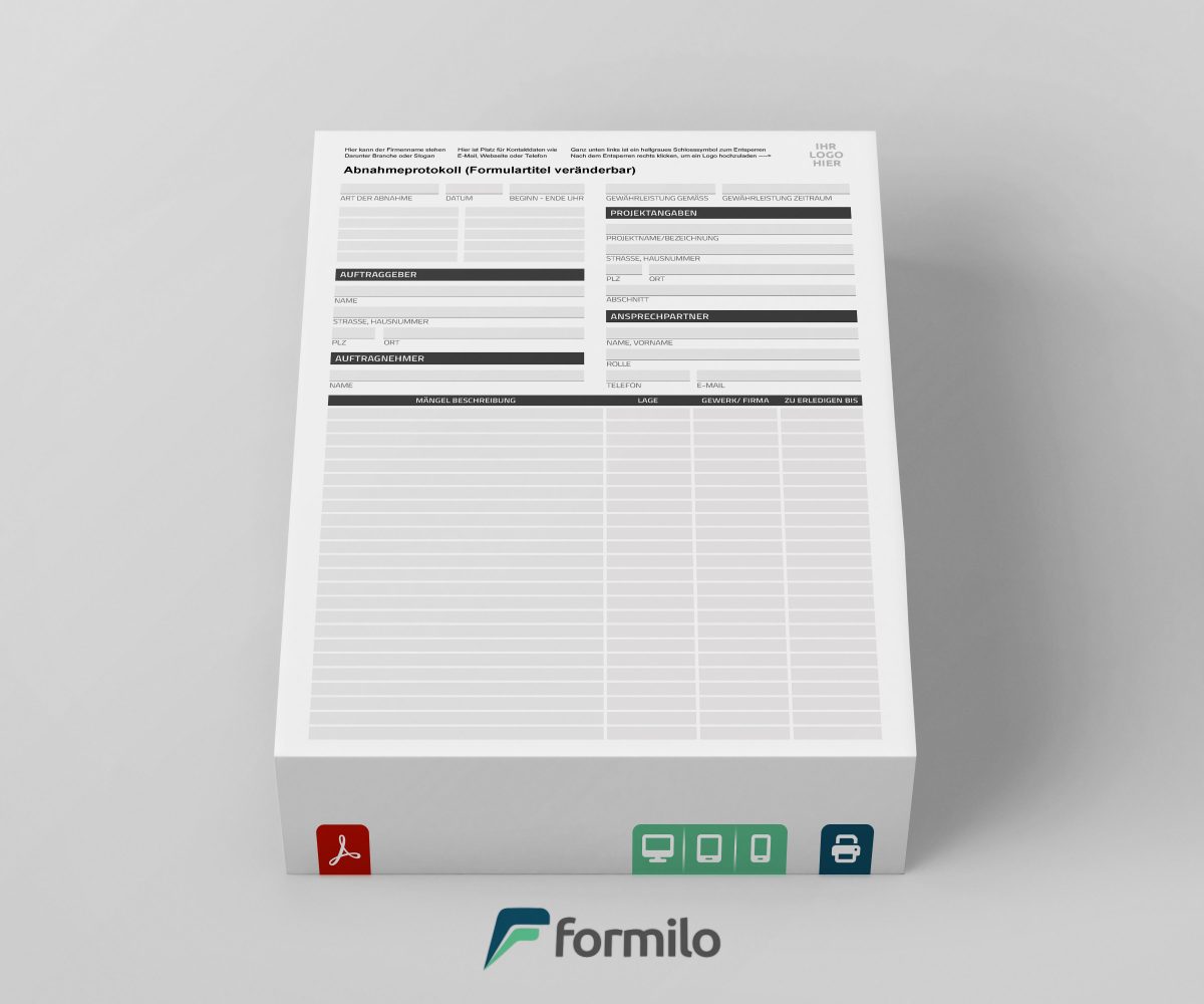 Die zweiseitige Struktur erlaubt es, auch umfangreiche Abnahmen vollständig und übersichtlich zu dokumentieren. Damit eignet sich die Vorlage besonders für komplexe Projekte oder interne Prozesse mit mehreren Prüfinstanzen. Durch den klaren Aufbau ist sie gleichermaßen für Bauunternehmen, Ingenieurbüros, Facility-Management-Firmen oder technische Dienstleister einsetzbar.