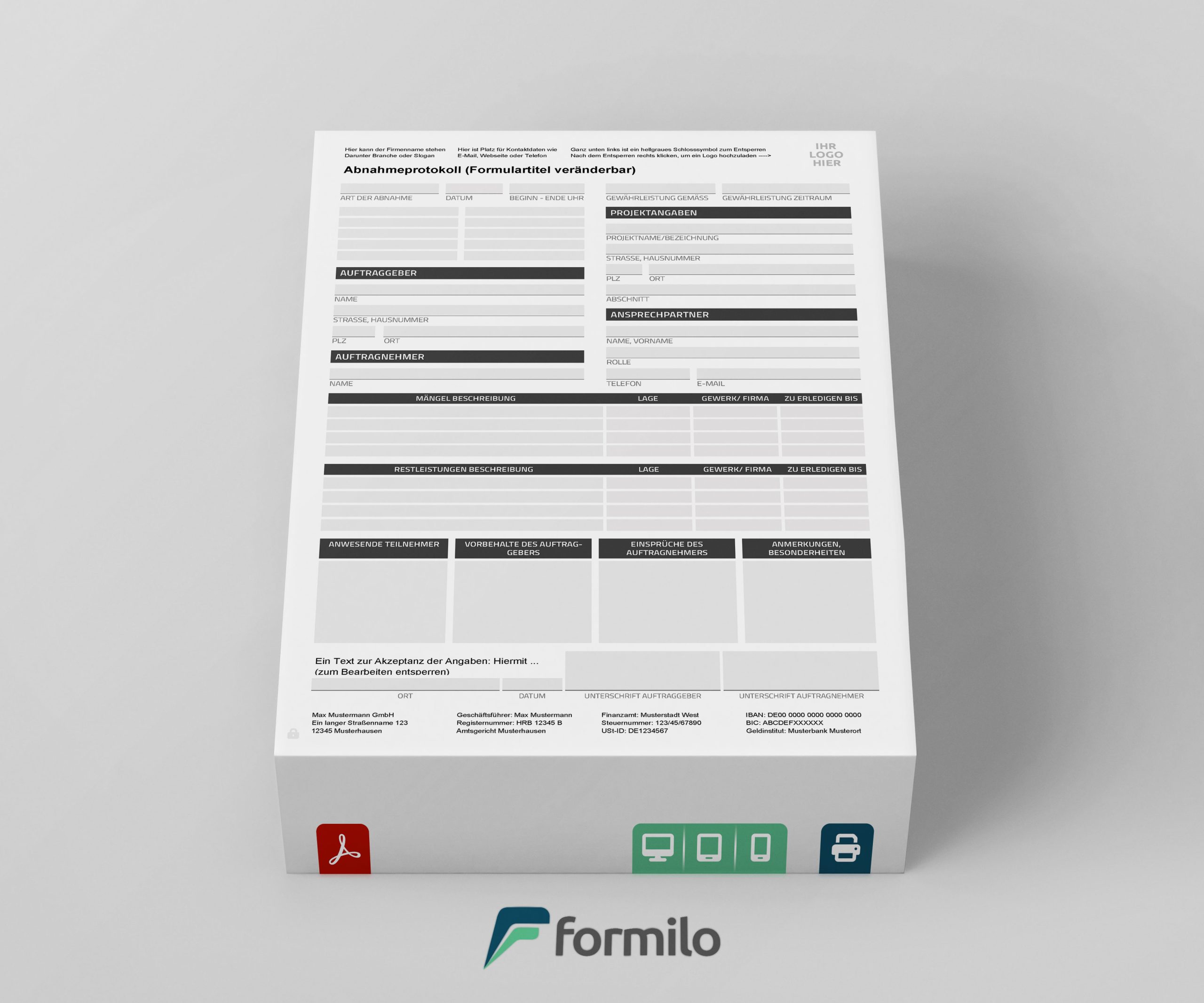Abnahmeprotokoll mit Ansprechpartner und freien Zusatzfeldern