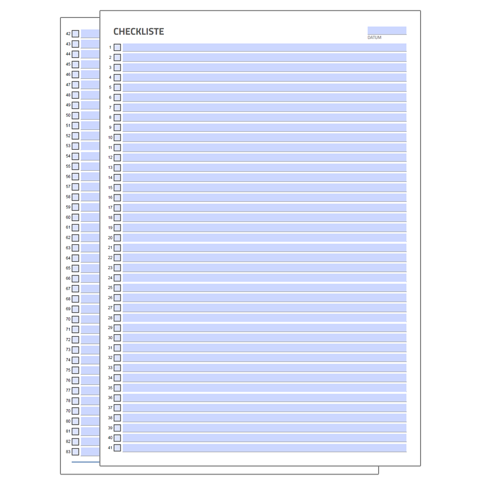 Checkliste zweiseitig einzeilig – Kostenlose interaktive PDF Vorlage