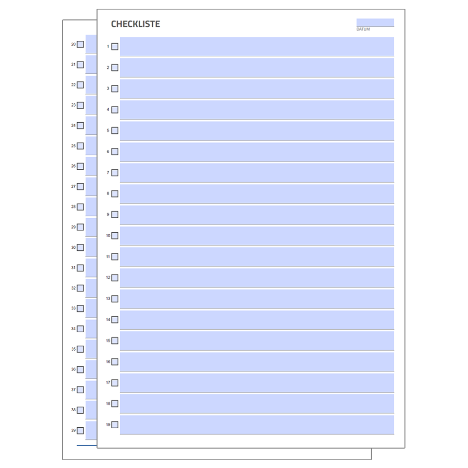 Checkliste zweiseitig zweizeilig – Kostenlose interaktive PDF Vorlage