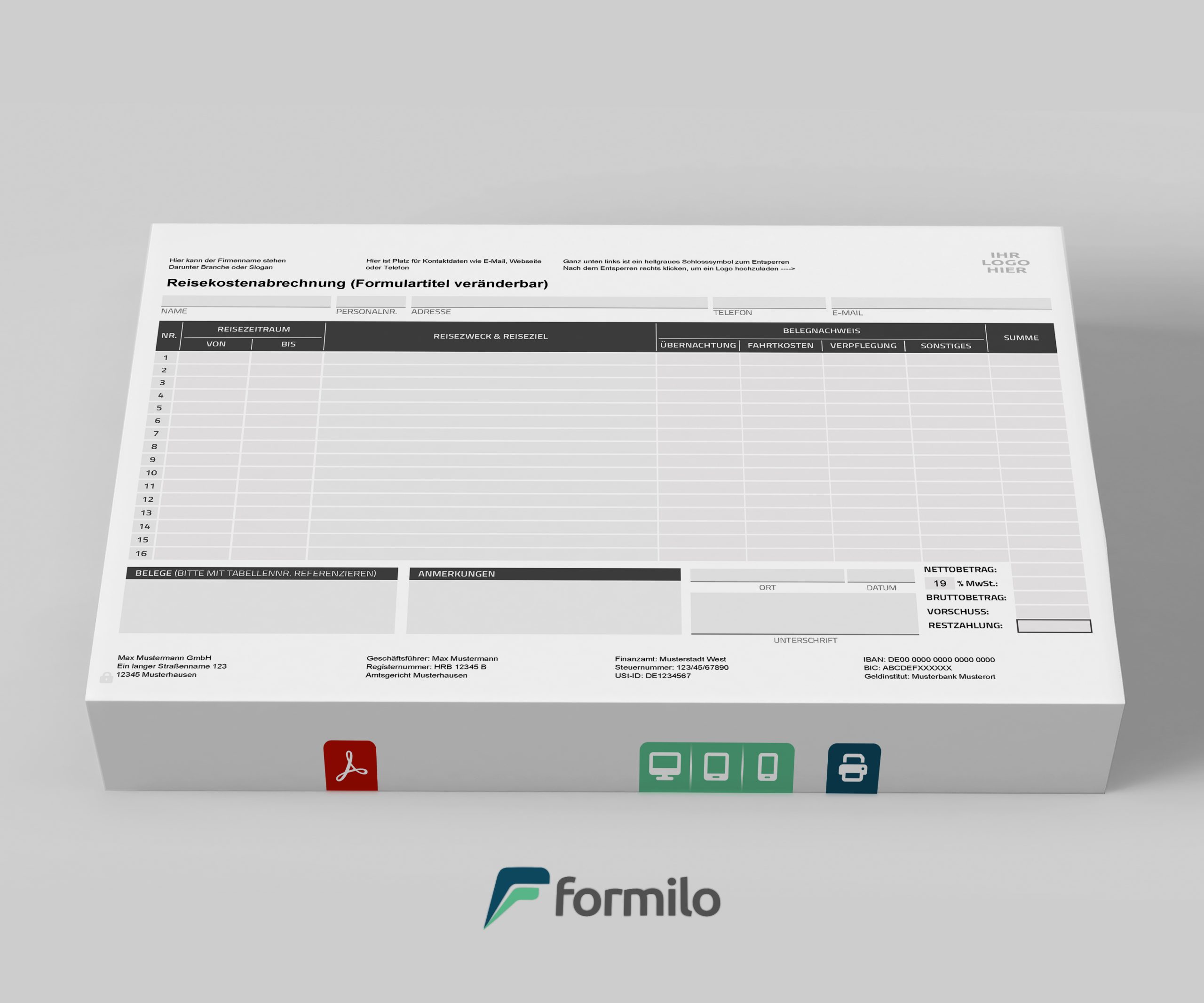 Reisekostenabrechnung Vorlage – Mehrere Reisen – Kontaktdaten – Mehrwertsteuer – Vorschuss – Belege