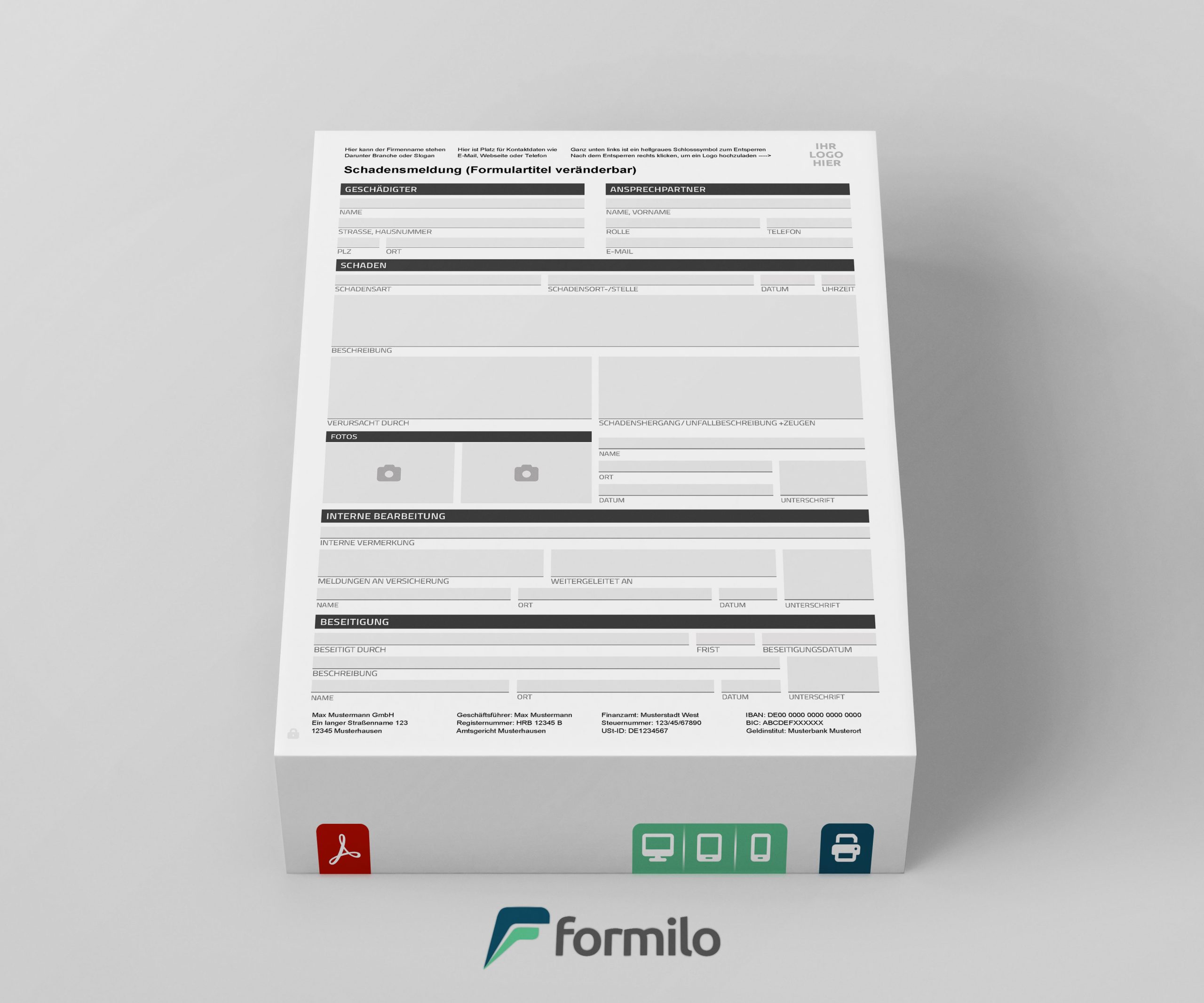 Die Schadensmeldung Vorlage von Formilo ist eine sofort einsetzbare, anpassbare Lösung für Unternehmen, die schnell und professionell Schäden dokumentieren möchten. Mit dieser Vorlage können Sie eine präzise Schadensmeldung erstellen, die alle relevanten Informationen enthält – sei es für Sachschäden, Personenschäden oder die Beseitigung und Vermeidung von zukünftigen Vorfällen. Die Vorlage wurde speziell entwickelt, um den bürokratischen Aufwand zu minimieren und Ihnen die tägliche Arbeit zu erleichtern.