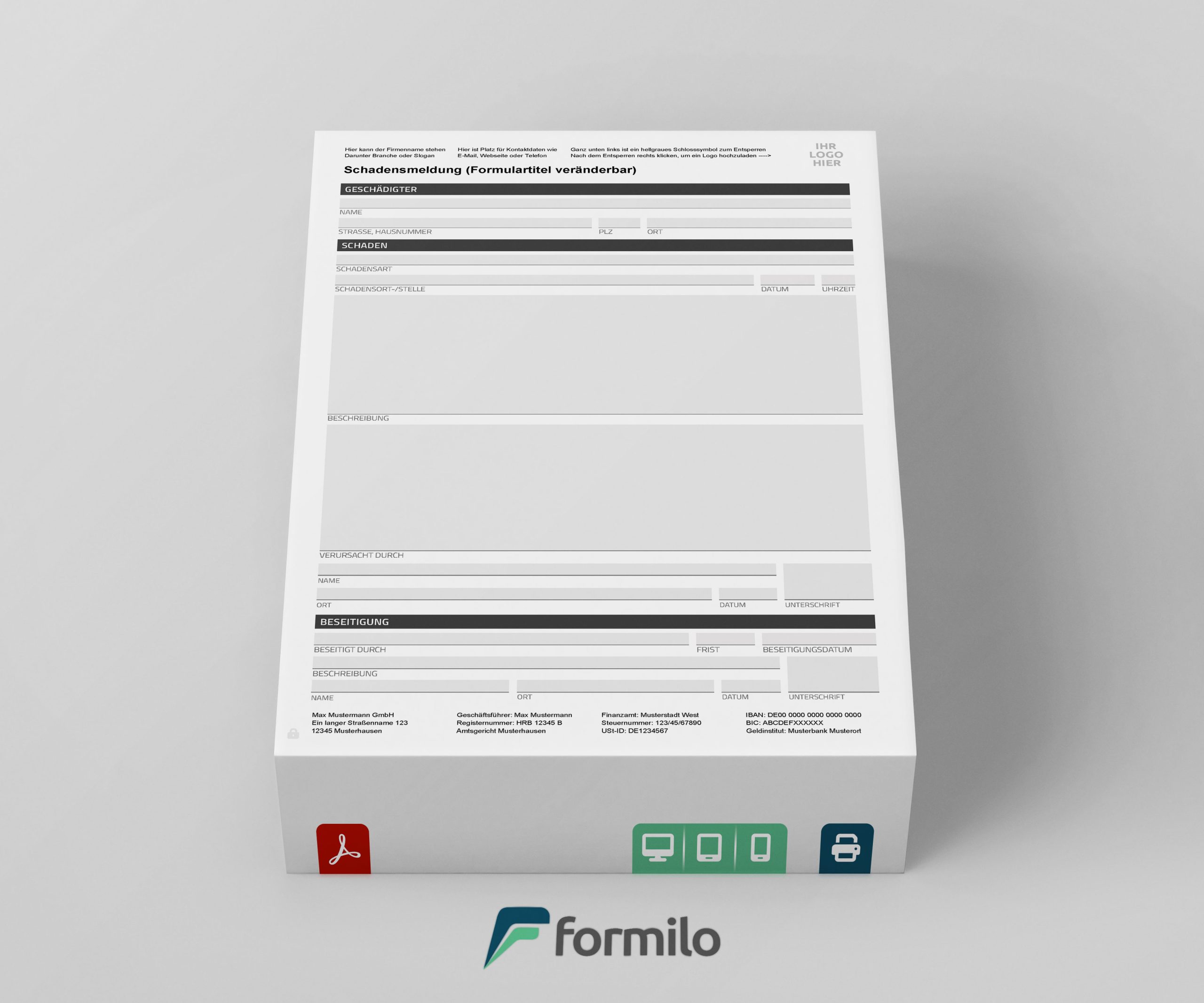 Unsere Schadensmeldung Vorlage ist ein praktisches Tool für Unternehmen, um Vorfälle schnell und effizient zu dokumentieren. Sie eignet sich besonders für die Erfassung von Personenschäden und Sachschäden, die sowohl intern als auch extern relevant sind. Die Vorlage lässt sich problemlos in einem kostenlosen PDF-Viewer wie dem Adobe Reader öffnen und nach Belieben anpassen. Besonders vorteilhaft ist die Flexibilität, die Sie bei der Nutzung der Vorlage haben. Sie können alle relevanten Daten wie Kopf- und Fußzeilen, die Formularbezeichnung sowie Ihr Unternehmenslogo individuell gestalten.